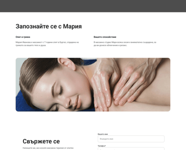 Впечатляващ уебсайт с красиви визуални елементи. Идеално за фризьори, маникюристки, козметици, психолози, адвокати, майстори, учители, терапевти, инструктори, фотографи, лекари, масажисти, брокери.